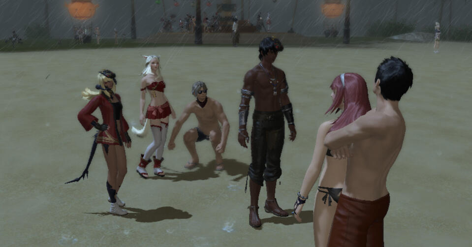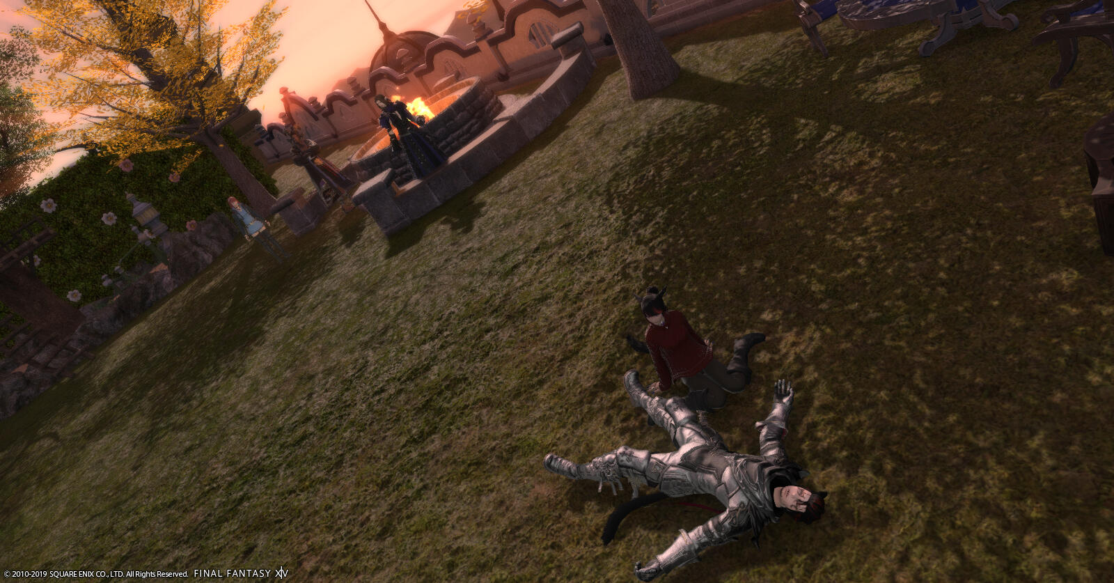 .....The girl would explore the area pausing a bit as she met a strange Miqo'te named Grizwald. He could not form words other than his name....seemed as if some sort of trama or injury must have affected him. The red head was puzzled, but he showed signs of understanding her and even acted rather flirty. It kind of felt like deja vu to her. Liz would shake her head as she wound up somehow with him at the festival for All Saints Wake.