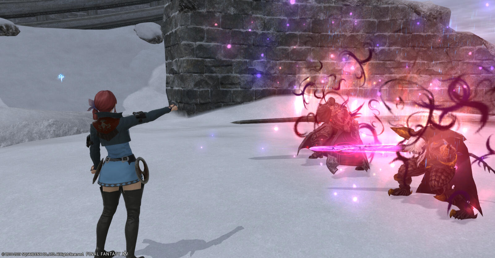......Elizabeth and Tek grew ever closer during training. They even spent a lot of time in their room training as she slowly became more and more accepting of having to fight to help. Meanwhile she would also start asking a man named Arthur in the guild to help her in training. He aided her in studying a monster in Haku Manor for her blue mage notes......Lizzy after constantly patching up her hurt mother began to tail her everywhere to try and keep her safe. She had lots of medical issues starting to appear and Liz was not about to lose her mom. At one point she even tried to follow in Ishgard which lead to her finding a fenrir cub abandoned in the snow. Lizbeth of course took it in and raised him at the estate calling him Plue.
